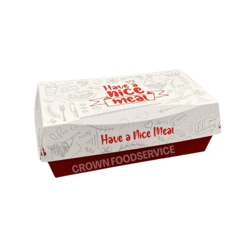 Present your meals with style using the BB10 Nice Meal Box 1×200, a durable and eco-friendly cardboard container made for larger or longer food items. Featuring a bold red “Have a Nice Meal” print, this packaging not only secures food but also enhances the customer’s dining experience with its cheerful, professional look.