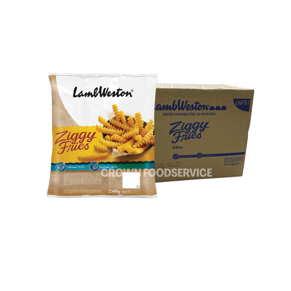 The Lamb Weston Ziggy Fries (4×2.5kg) are made of premium-quality potatoes and have a crinkle pattern for maximum crispiness. A delightful, savory taste is created by the perfectly seasoned frozen fries. Ziggy Fries add texture and flavor to any meal, whether they’re served in a restaurant or at home.