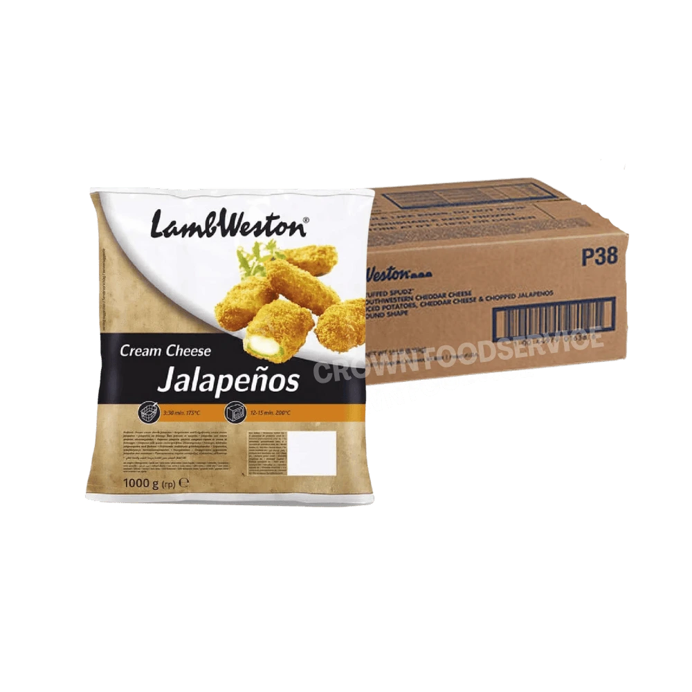 These Lamb Weston Cream Cheese Jalapeos (6x1kg) combine heat with creaminess, making them the perfect snack or appetizer. Cream cheese filling complements spicy jalapeo peppers perfectly, all encased in a crispy, golden coating. The delicious, crispy, and flavorful jalapeos are ready in no time at all with simple deep frying, air frying, or baking.