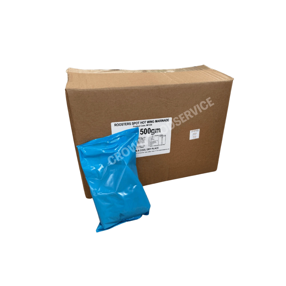 Roosters Spot Hot Wing Marinade (20x500g) is a premium, flavorful marinade that adds a bold, spicy kick to chicken wings and other meats. You can use this marinade to create mouthwatering hot wings, grilled meats, and more. No matter whether you are cooking in a commercial kitchen or at home, this marinade ensures a consistent and savory flavor that will keep your customers coming back for more.